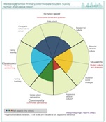 These circular reports are designed to represent each school as a system with different dimensions (called aspects). The reports give a broad overview of the W@S data by aspect and sub-aspect. They can be used as a starting point to look for patterns or differences that can then be explored more fully in the more detailed report types. The Student Survey report displays national reference data1 for relevant year levels.
